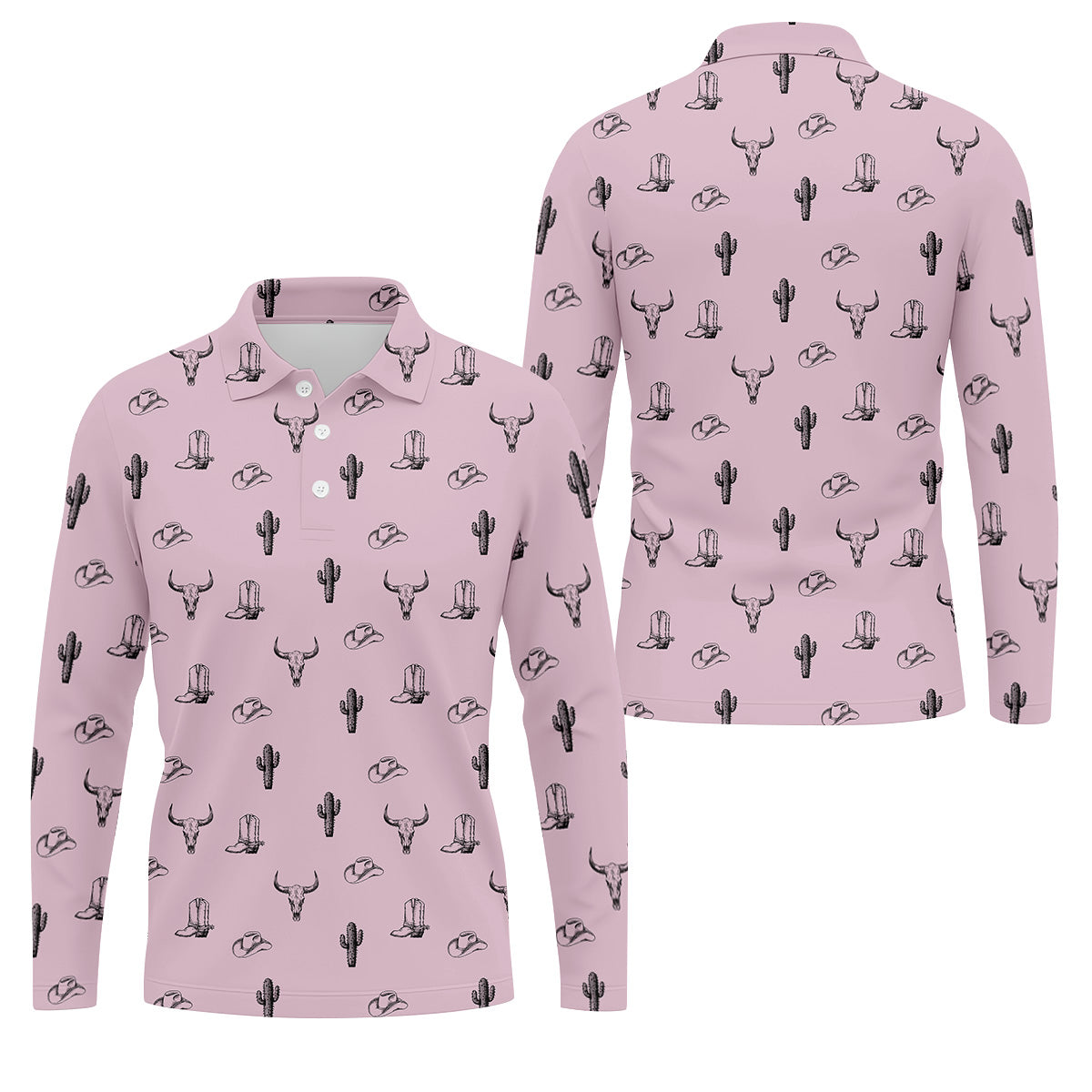 Wild West Cactus Pink Lavender Western Golf Shirt, Golf Tops For Men, Polo Shirts For Men, Golfing Apparel