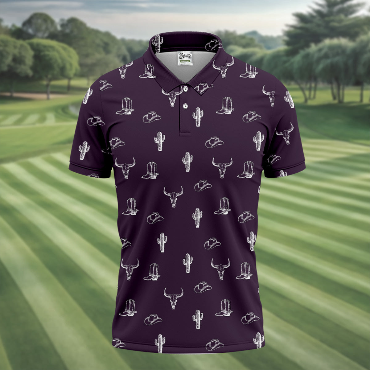 Wild West Cactus Purple Western Golf Shirt, Golf Tops For Men, Polo Shirts For Men, Golfing Apparel