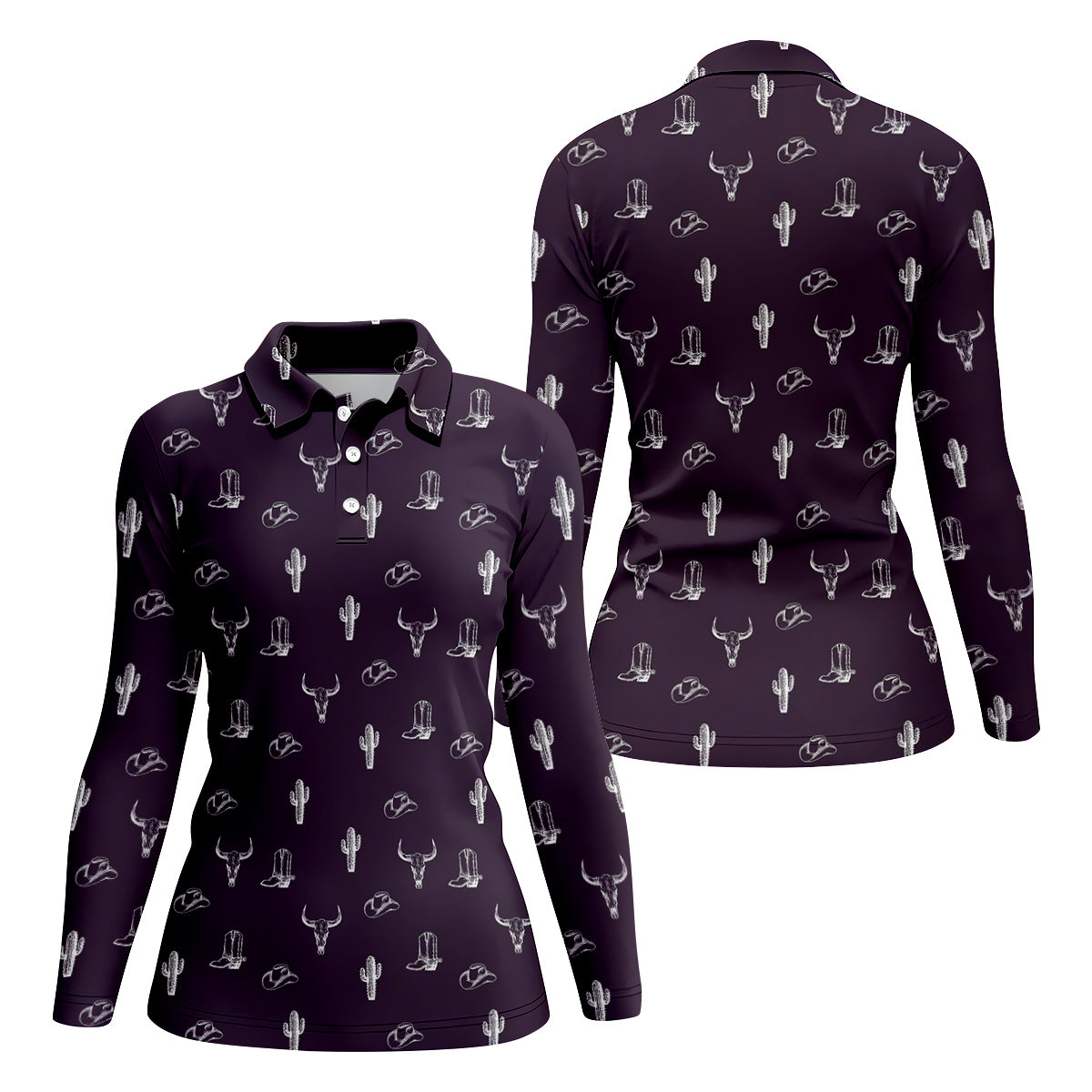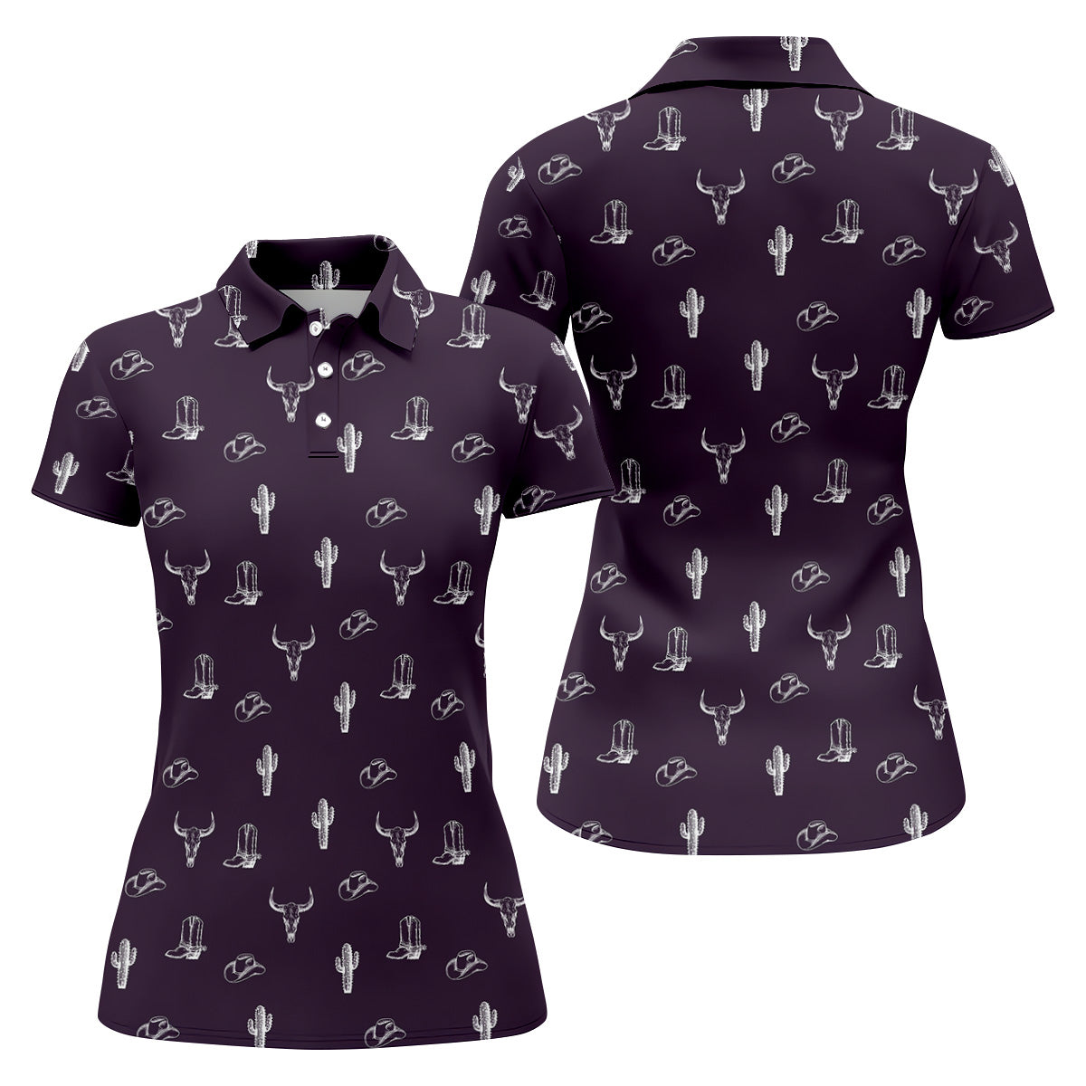 Wild West Cactus Purple Western Golf Shirts Women, Unique Gift For Golfer, Ladies Golf Shirts