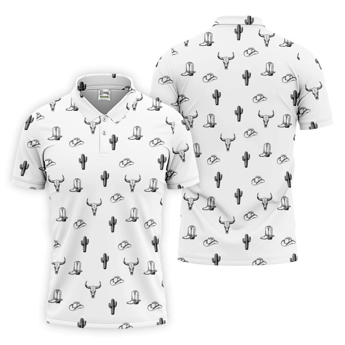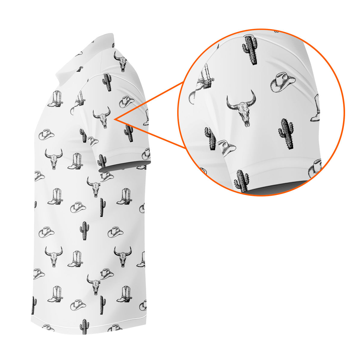 Wild West Cactus White Western Golf Shirt, Golf Tops For Men, Polo Shirts For Men, Golfing Apparel