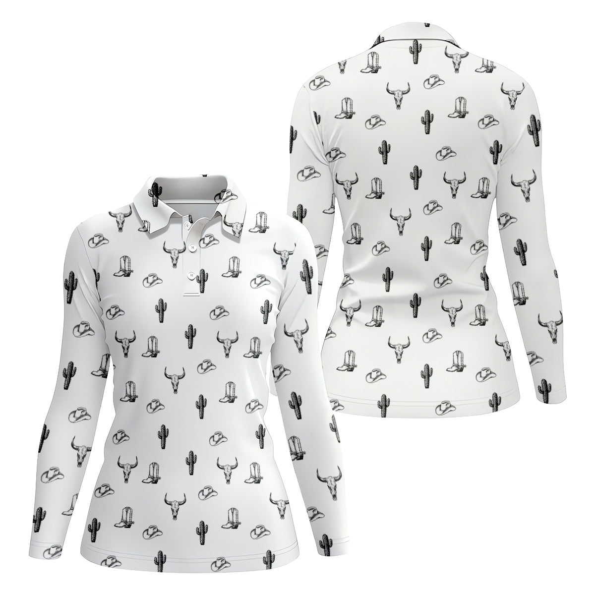 Wild West Cactus White Western Golf Shirts Women, Unique Gift For Golfer, Ladies Golf Shirts