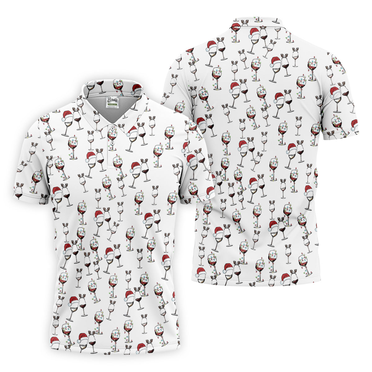 Wine Glass Christmas Lighting Golf Tops For Men, Christmas Golf Shirt, Polo Shirts For Men