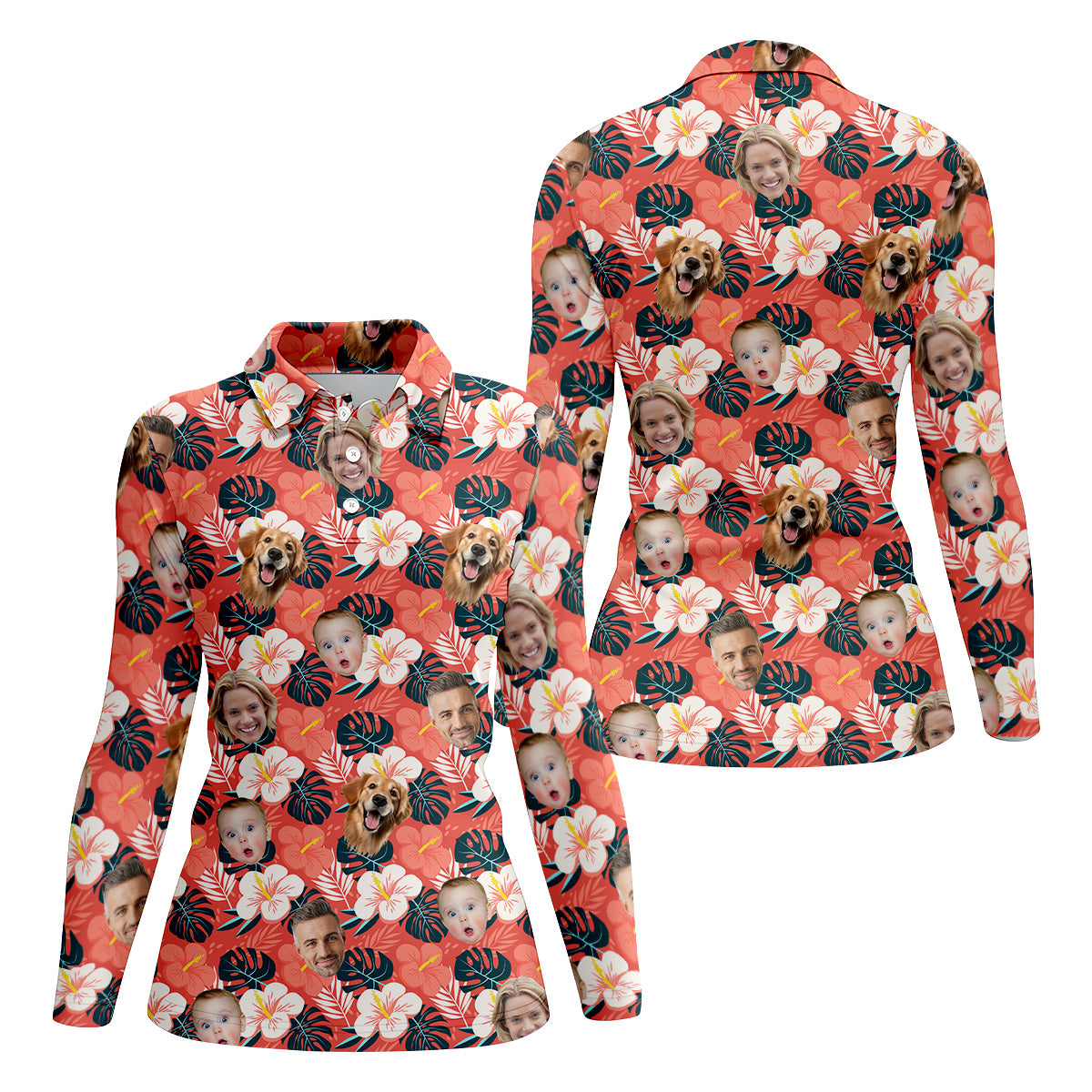 Womens Hawaiian Golf Shirts, Custom Hawaiian Shirt With Face, Women's Long Sleeve Golf Shirts, Ladies Golf Tops