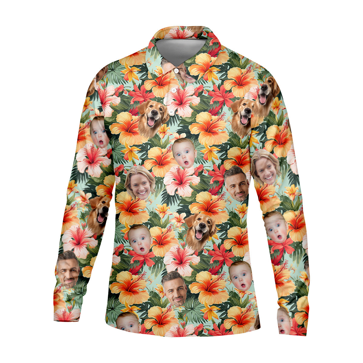 Yellow Hibiscus Flower Hawaiian Golf Shirt, Custom Face Shirt, Flower Men Shirt, Best Gifts For Men Golfers