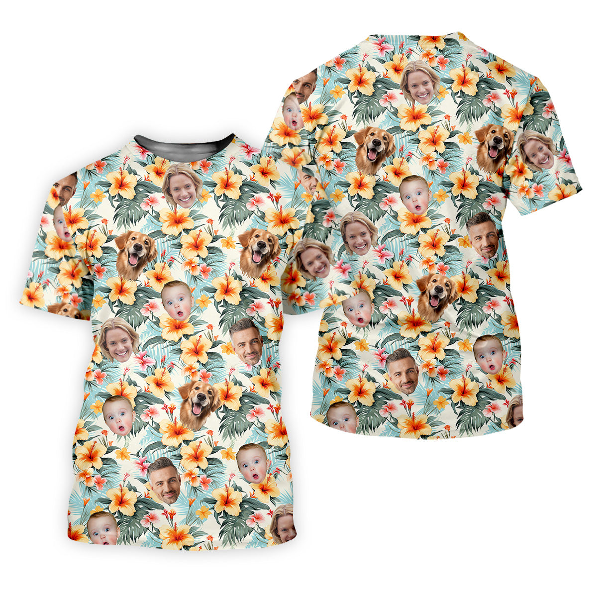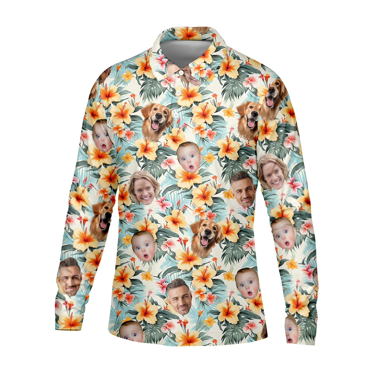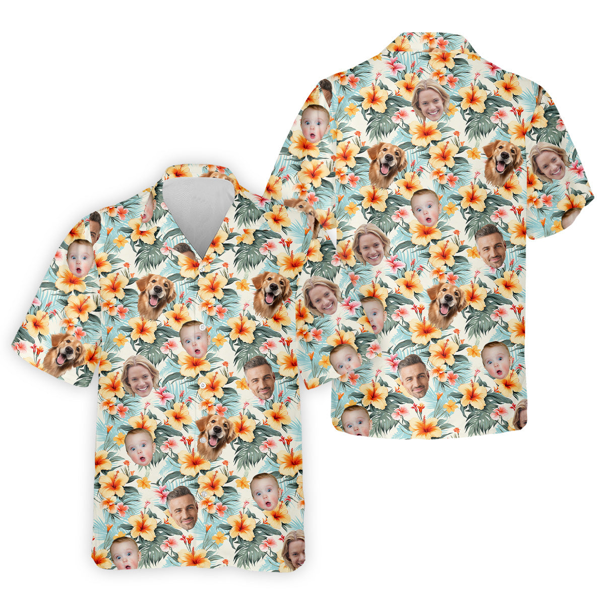 Yellow Hibiscus Flower Hawaiian Golf Shirt, Custom Face Shirt, Great Golf Gifts For Guys, Flower Men Shirt