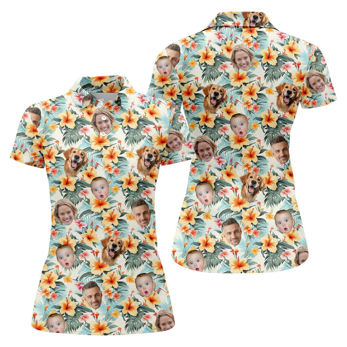 Yellow Hibiscus Flower Hawaiian Golf Shirt, Custom Face Shirt, Womens Sleeveless Polo, Ladies Golf Shirts