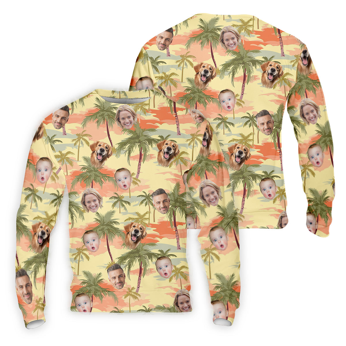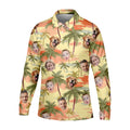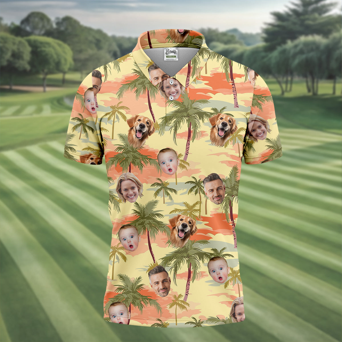 Yellow Sunset Hawaiian Shirt With Face, Men Golf Polo, Matching Hawaiian Outfits, Long Sleeve Polo