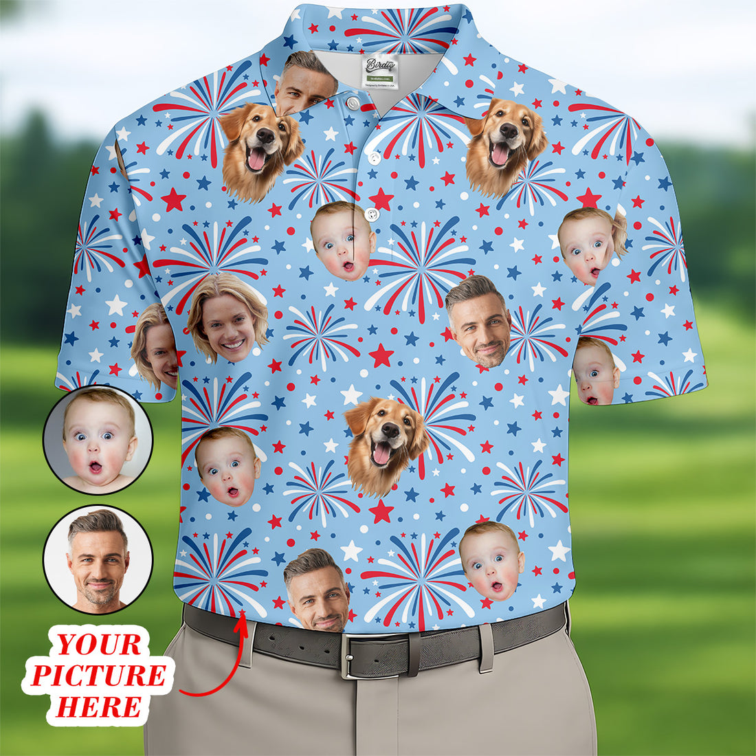4th Of July Custom Face Shirts, Shirts With Faces On Them, Men's Golf Polo Shirt, USA Golf Shirt