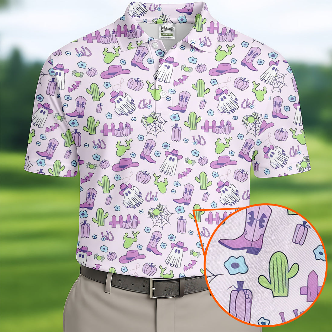 Western Halloween Purple Golf Tops For Men, Fun Golf Shirts For Men, Polo Shirts For Men