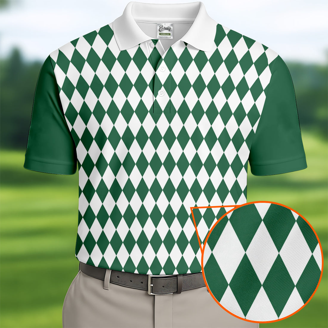 White And Green Argyle Pattern Men Polo, Polo Shirts For Men, Golf Gift For Men, Golfing Apparel