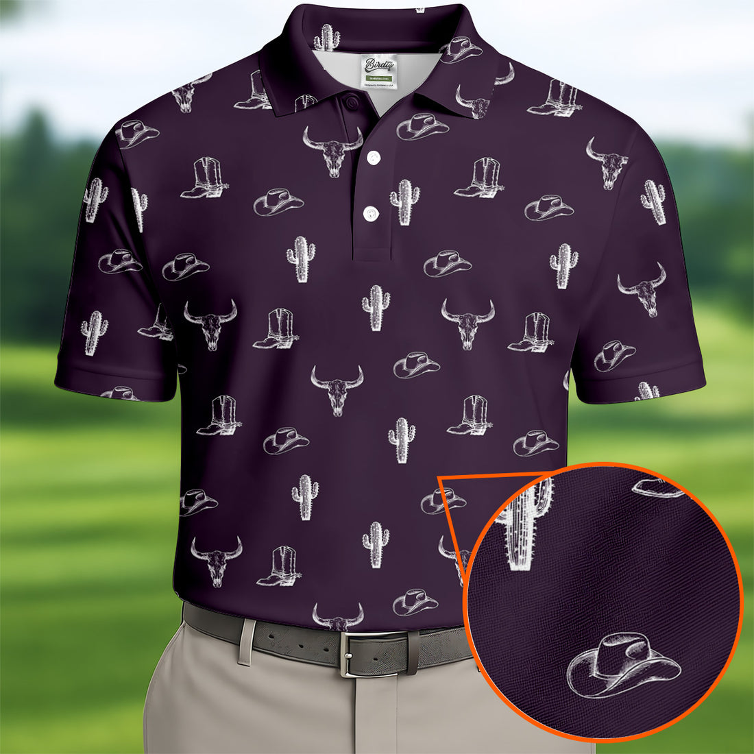 Wild West Cactus Purple Western Golf Shirt, Golf Tops For Men, Polo Shirts For Men, Golfing Apparel
