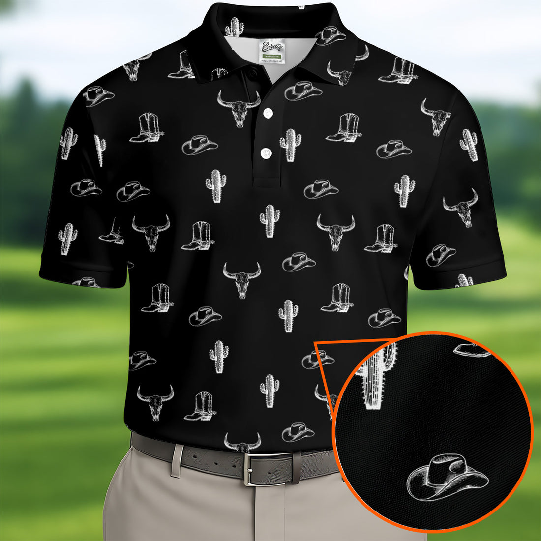 Wild West Cactus Black Western Golf Shirt, Golf Tops For Men, Polo Shirts For Men, Golfing Apparel