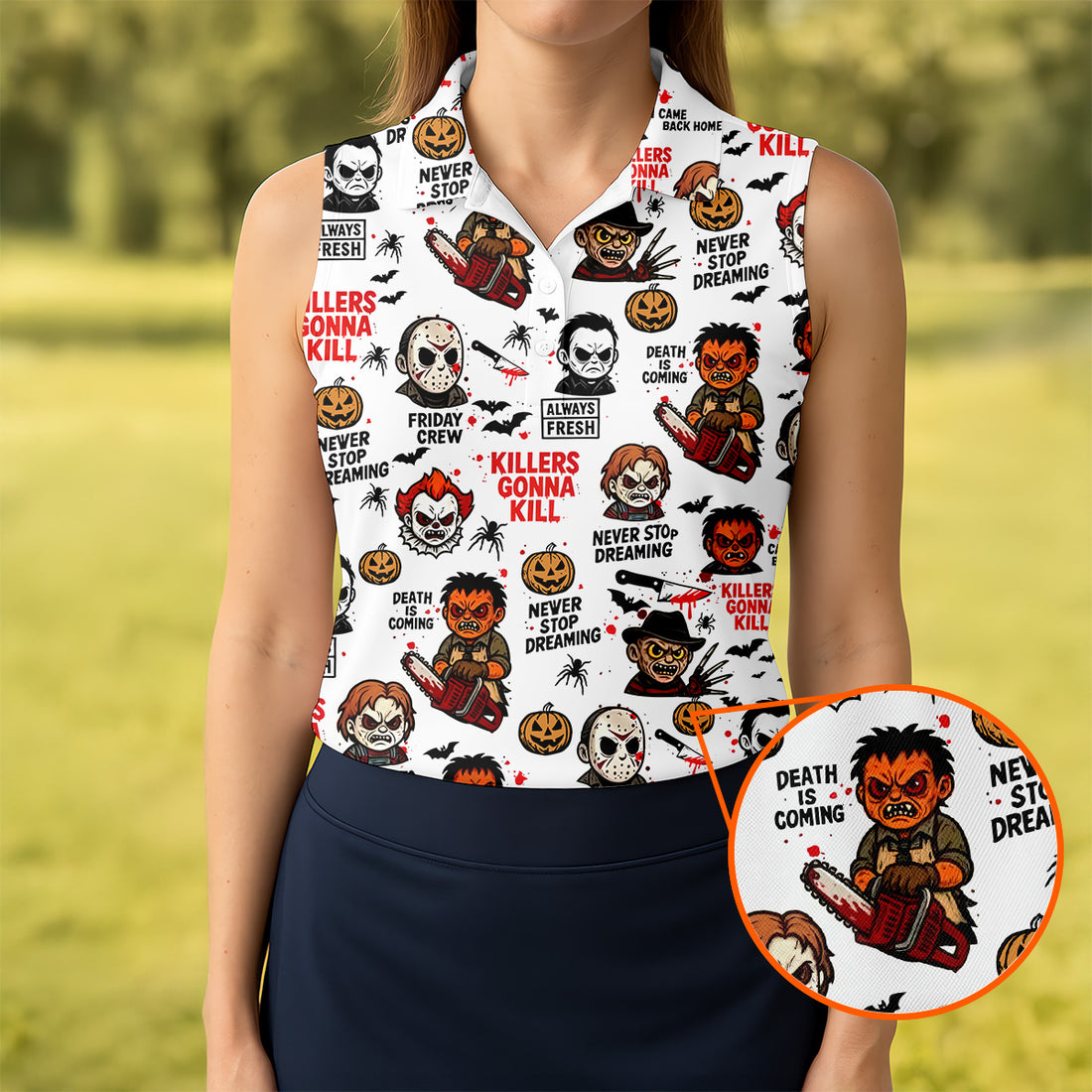 Michael Myers Halloween Funny Golf Shirts Women, Classic Horror Characters Ladies Golf Tops, Horror Movie Shirt