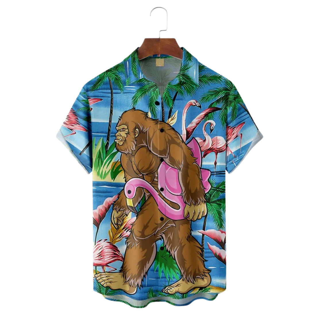 Bigfoot Flamingo Hawaiian Golf Shirt, Men's Golf Shirt, Tropical Vibe Funny Golf Shirt