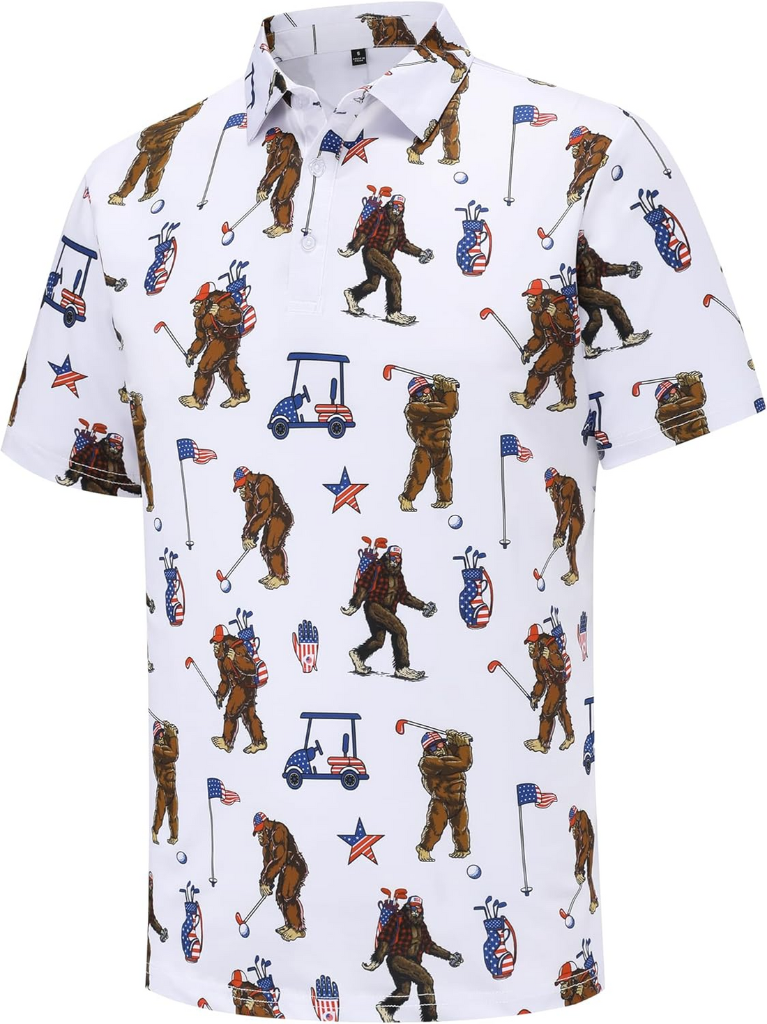 Bigfoot Golf Shirt, Patriotic Golf Polo Shirts, Men's Long Seeve Golf Shirts, Golf Gifts For Men