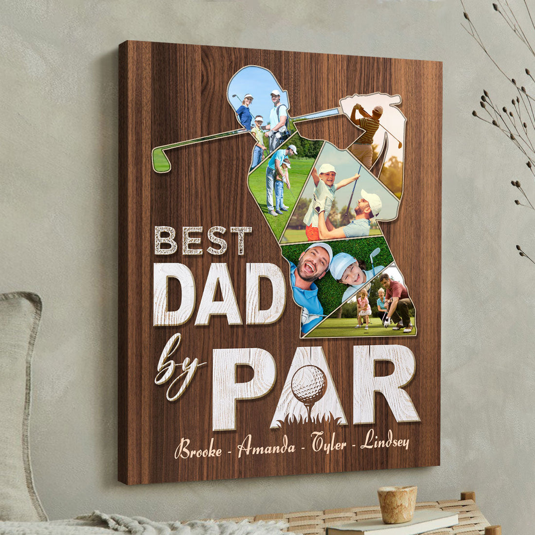 Best Dad By Par Custom Photo Canvas, Golf Wall Art, Christmas Golf Gift