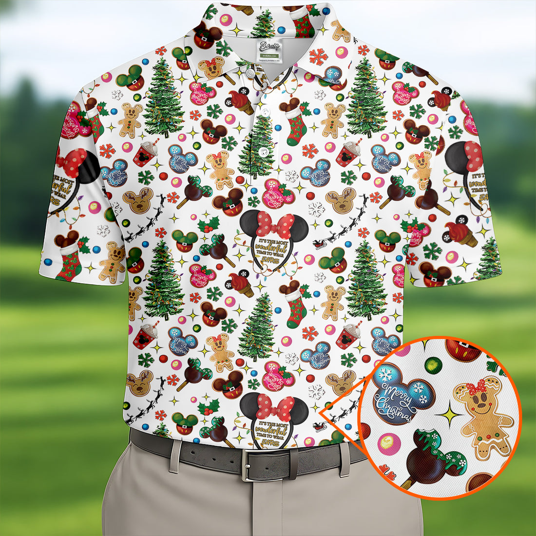 Christmas Cute Pattern Golf Tops For Men, Cartoon Print Polo Shirts For Men, Christmas Golf Shirt, Golfing Apparel