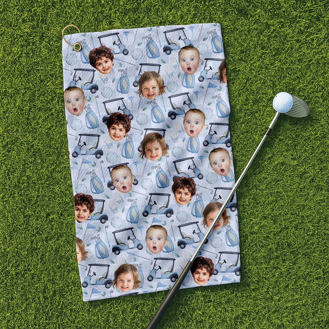 Custom Kid Face Small Funny Golf Towel, Golf Gift For Dad, Cool Golf Towel