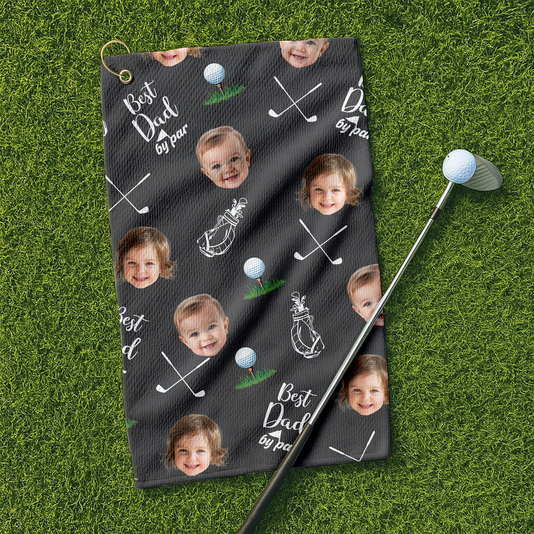 Best Dad By Par Custom Kids Face Funny Golf Towel, Golf Gifts For Dad, Gift For The Golfing Dad