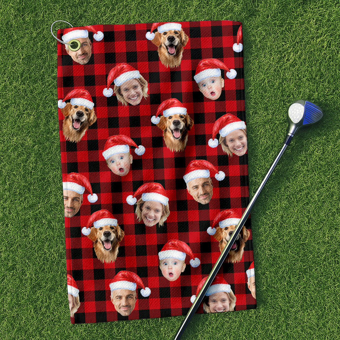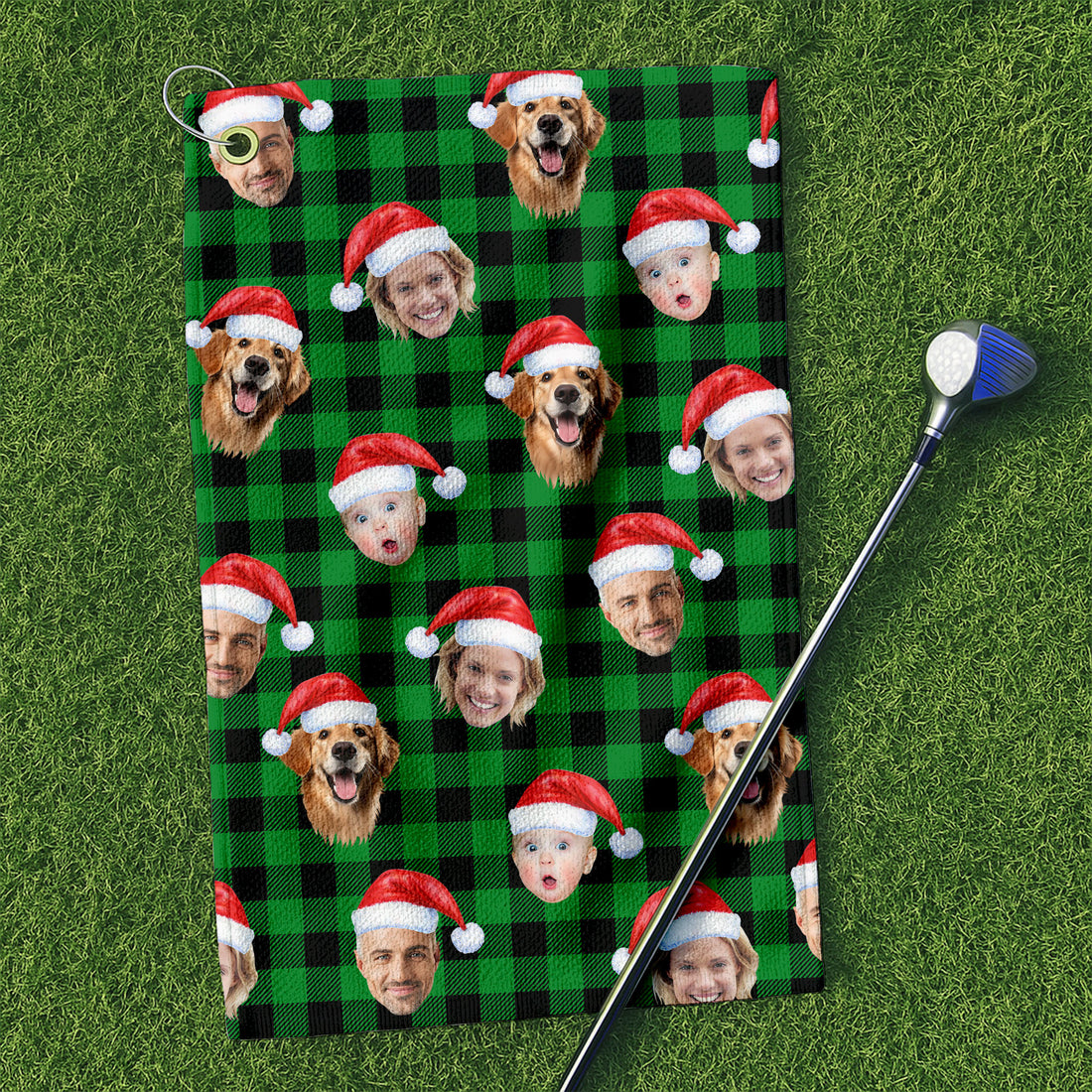Custom Face Green Buffalo Plaid Golf Towels, Christmas Golf Gift, Custom Golf Accessories