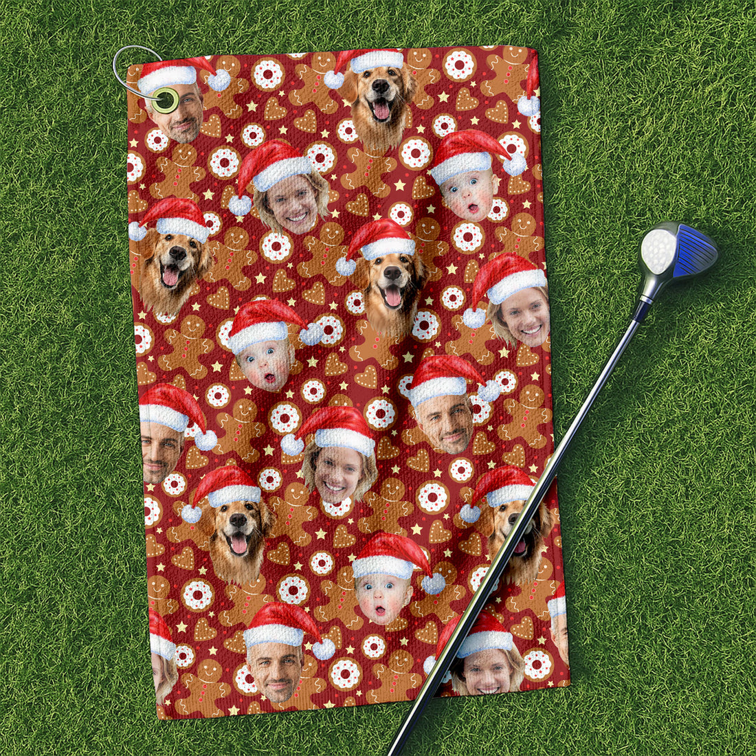Custom Face Gingerbread Man Christmas Red Golf Towels, Christmas Golf Gift, Custom Golf Accessories