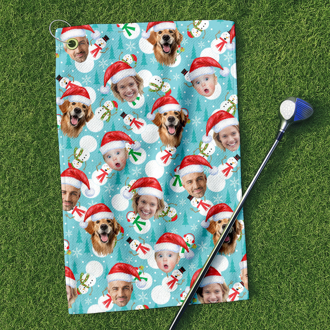 Custom Face Joyful Christmas Icy Blue Golf Towels, Christmas Golf Gift, Custom Golf Accessories