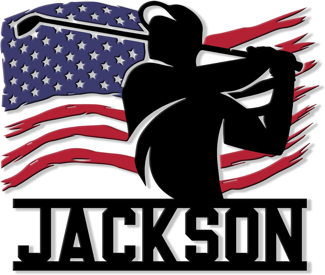 Custom American Flag Golf Metal Sign, Metal Golf Wall Art, Christmas Golf Gift