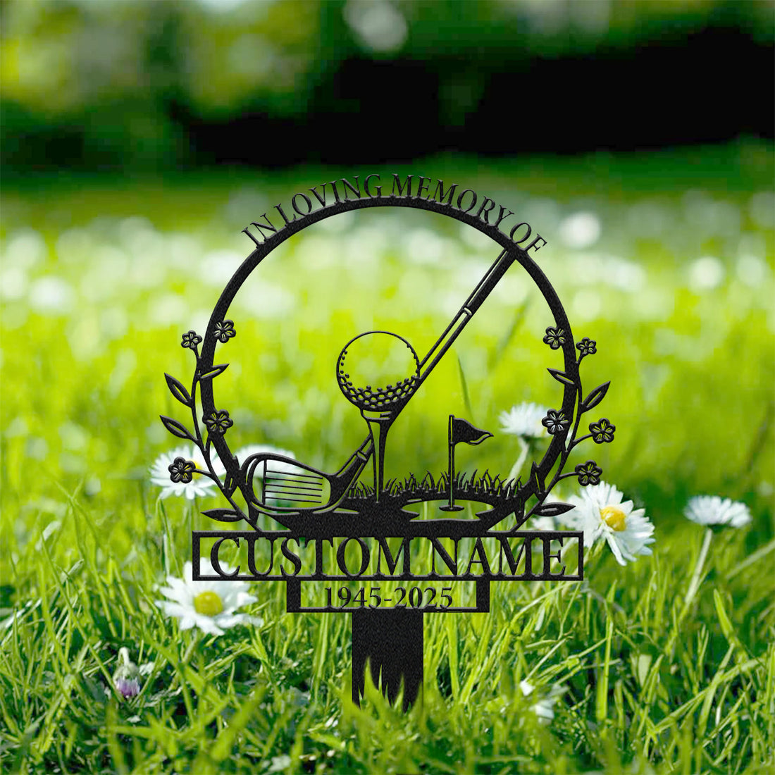 In Loving Memory Golf Sign, Custom Golfer Grave Marker, Golfing Memorial Metal Stake, Metal Stake