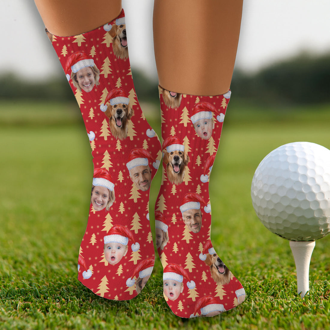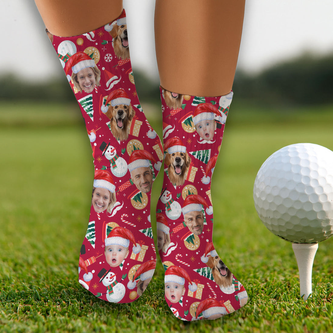 Custom Face Christmas Icons Red Golf Socks, Christmas Golf Gift, Custom Golf Accessories