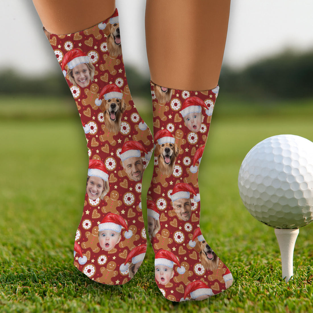 Custom Face Gingerbread Man Christmas Red Golf Socks, Christmas Golf Gift, Custom Golf Accessories