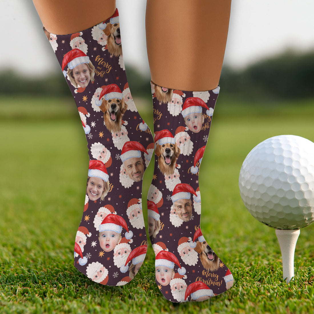 Custom Face Merry Christmas Santa Golf Socks, Christmas Golf Gift, Custom Golf Accessories