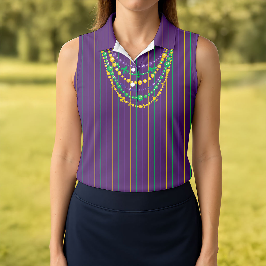 Mardi Gras Beads Necklaces Print Purple Golf Shirt, Women's Golf Shirts, Ladies Golf Polos, Golf Shirt For Women