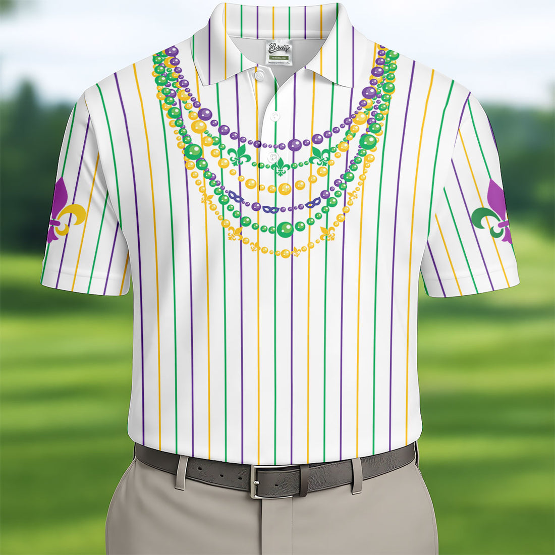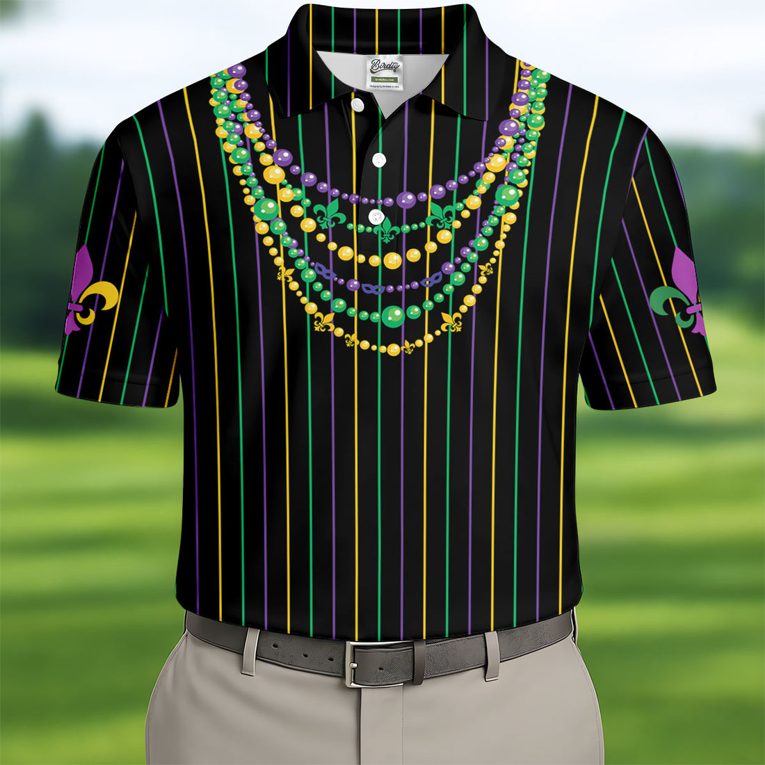 Mardi Gras Beads Necklaces Print Green Golf Shirt, Golf Tops For Men, Polo Shirts For Men, Golf Shirts For Men