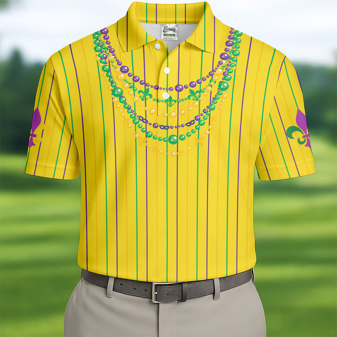 Mardi Gras Beads Necklaces Print Yellow Golf Shirt, Golf Tops For Men, Polo Shirts For Men, Golf Shirts For Men