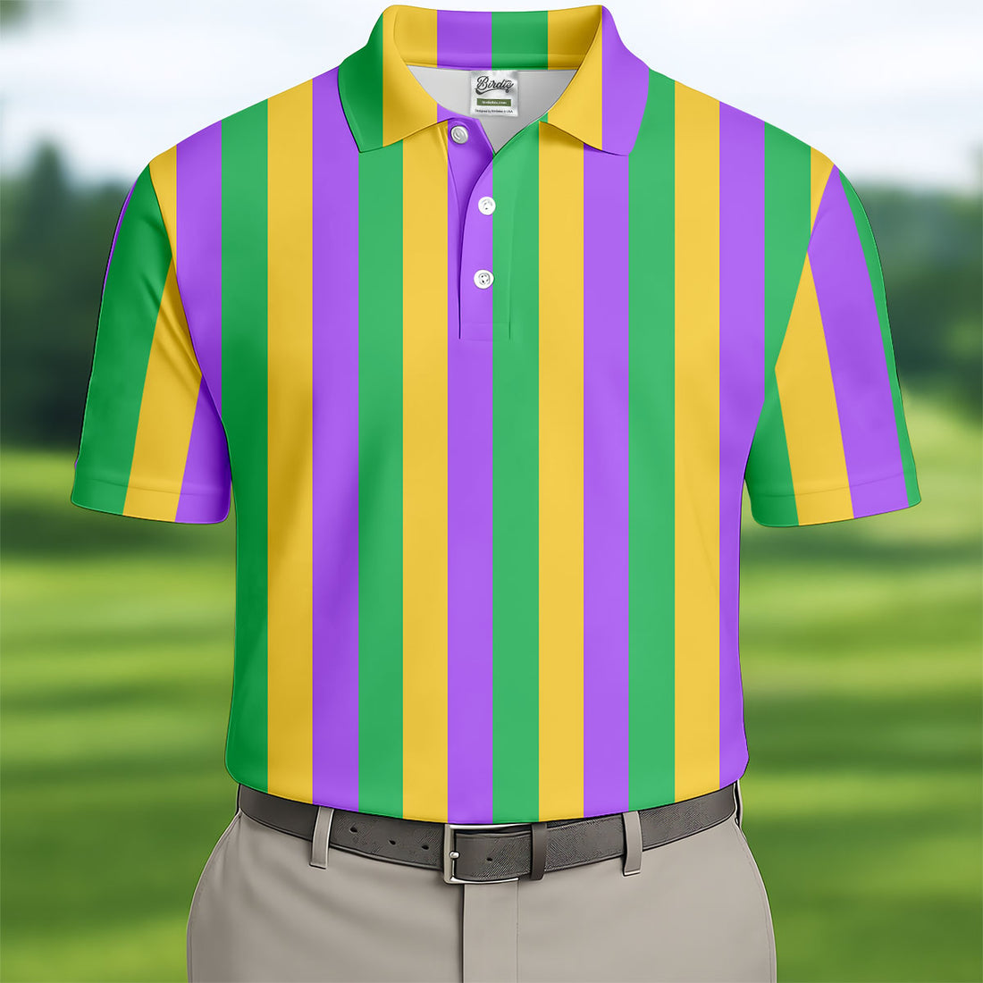 Green Gold Purple Vertical Stripe Mardi Gras Golf Shirt, Polo Shirts For Men, Golf Shirts For Men