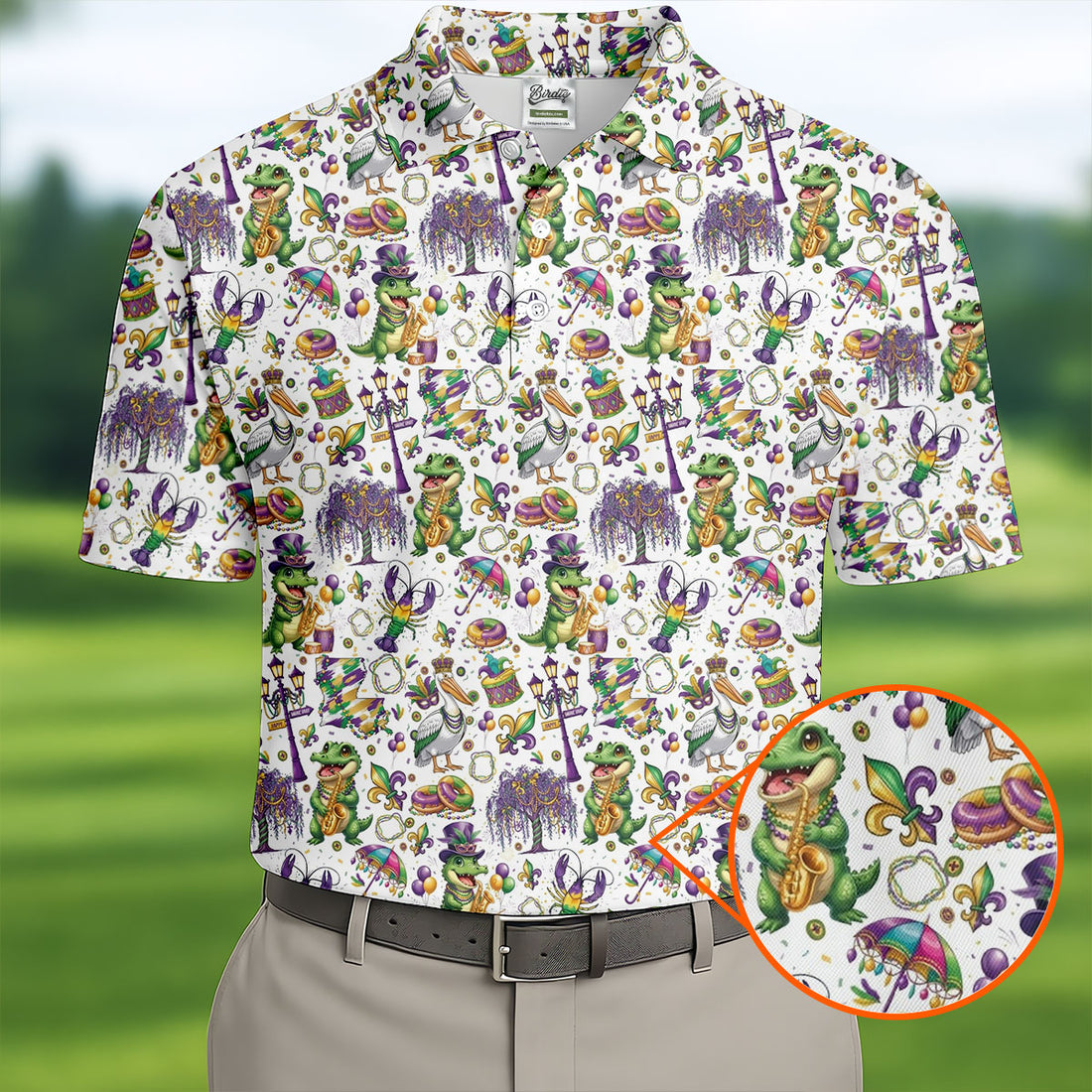 Mardi Gras Fleur De Lis Animal Band White Golf Shirt, Golf Tops For Men, Polo Shirts For Men