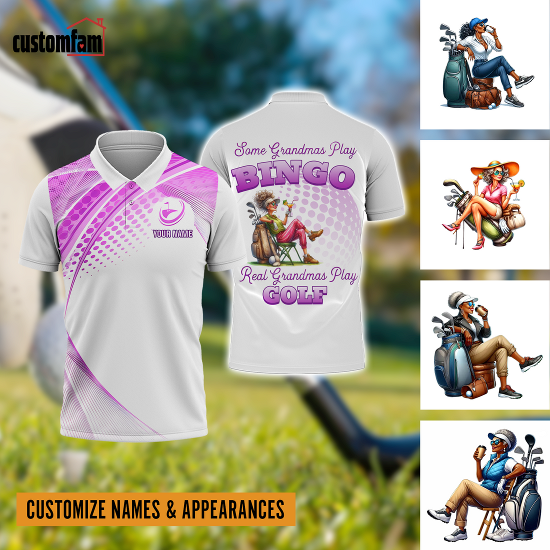 Some Grandmas Play Bingo Real Grandmas Play Golf Custom Men's Golf Polo Shirt, Golfing Apparel, Gift For Golfers