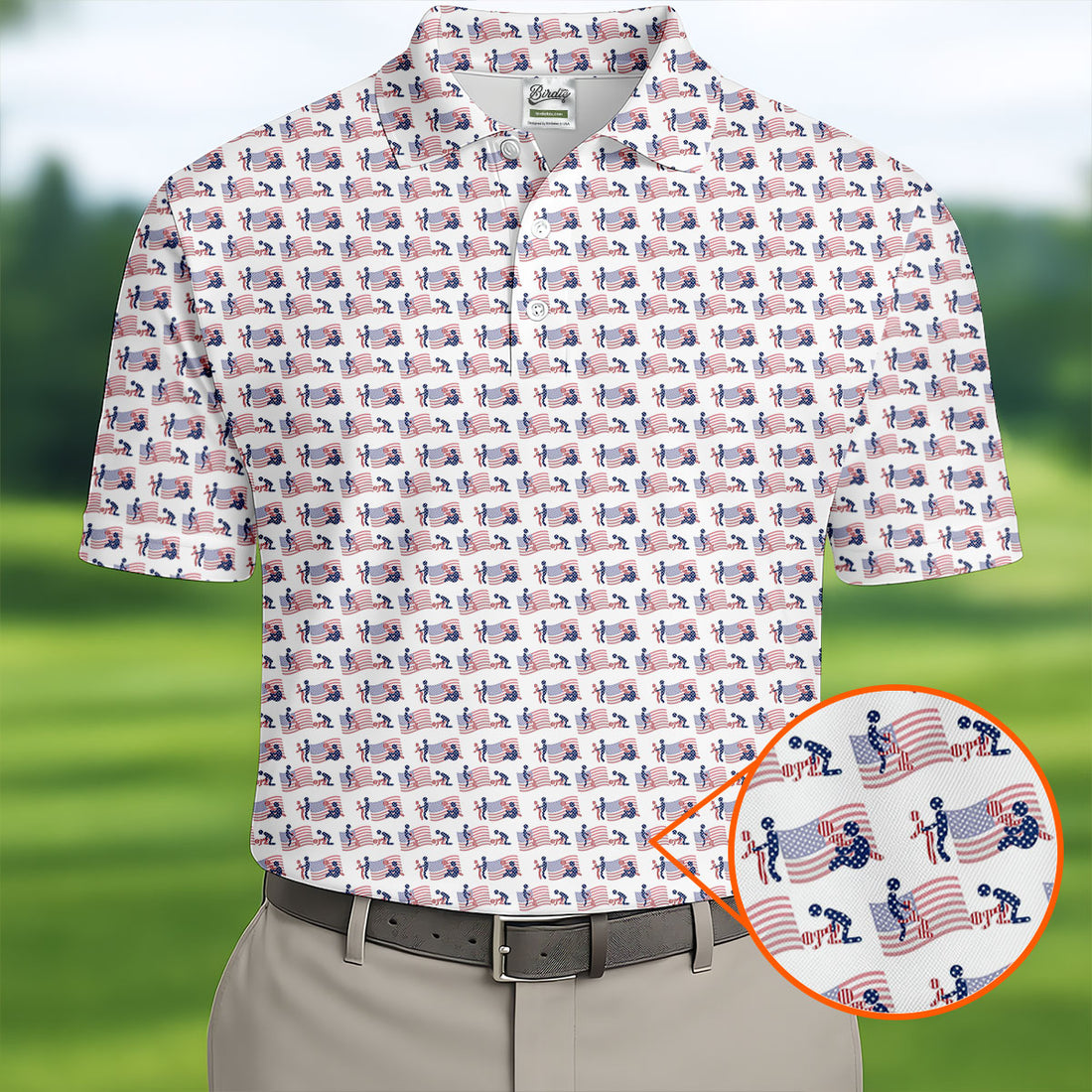 Naughty Position American Flag Pattern Patriotic Golf Shirts, 250th Anniversary Golf Shirts For Men