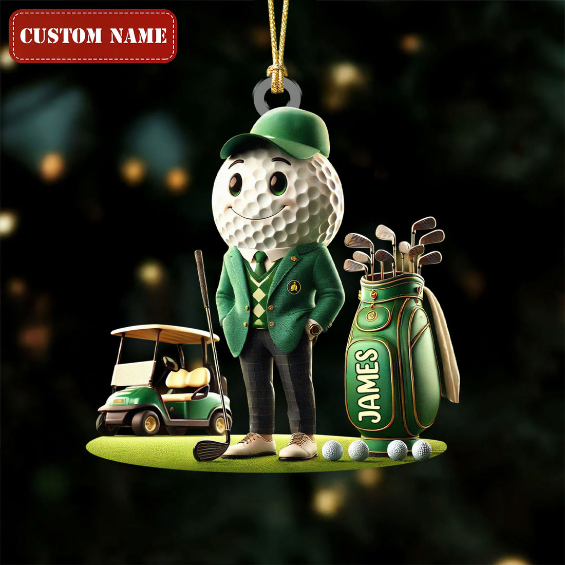 Personalized Golf Bag Acrylic Ornament, Custom Name Golf Ornament, Golf Keychain, Christmas Golf Gift