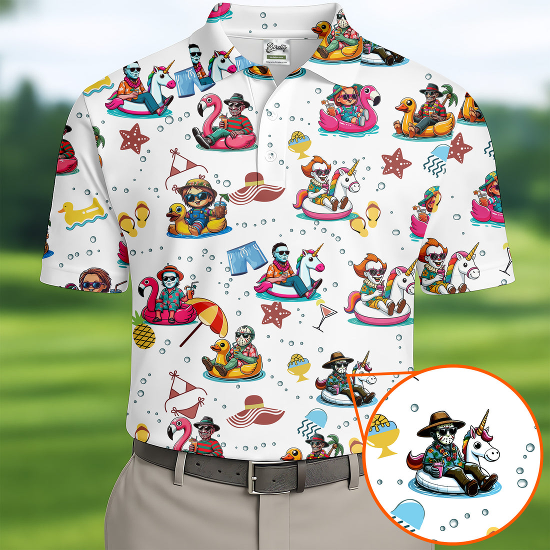 Halloween Summer Men's Polo Shirt, Horror Character Shirt, Fun Golf Polos, Funny Halloween Shirt