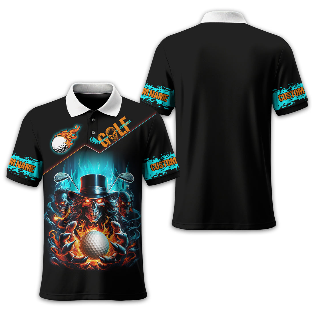 Skull And Fire Custom Golf Polo Shirt, Gift For Golfers, Golf Gift For Men