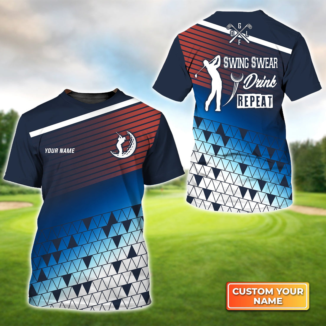 Golfing Swing Swear Drink Repeat Personalized Name 3D Tshirt Gift For Golfer