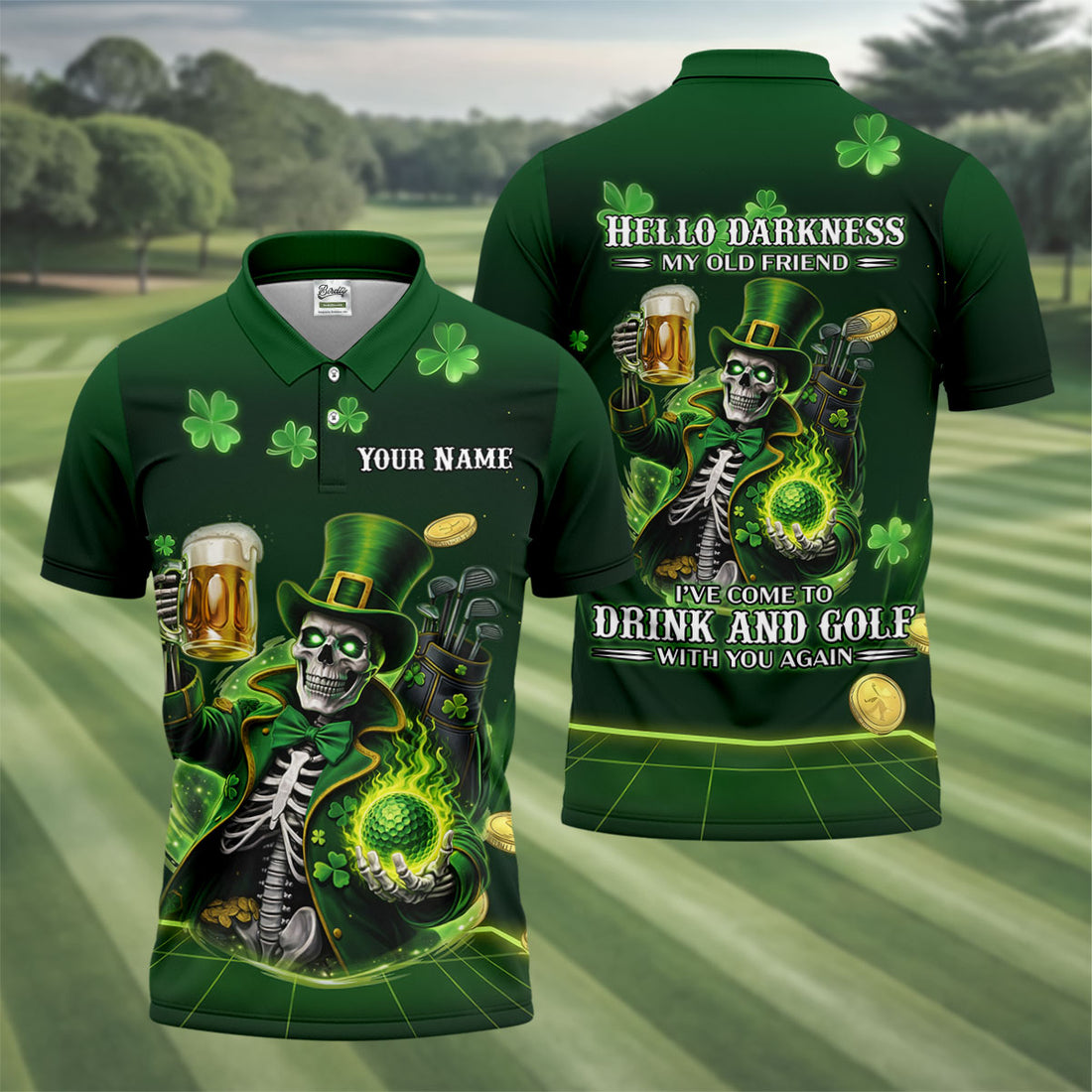 Hello Darkness My Old Friend Golf And Beer St Patrick's Day Green Golf Tops For Men, Golf Shirts For Men