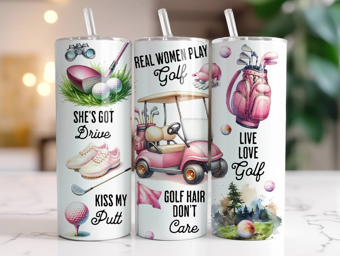 Real Woman Play Golf Skinny Tumbler, Golf Gifts For Women, Women's Stainless Steel Travel Mug