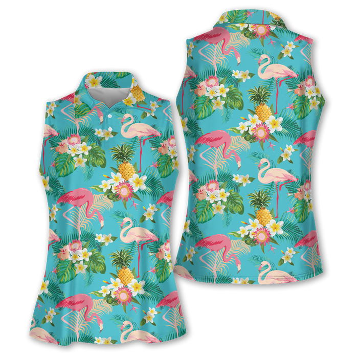 Funny Flamingo Sleeveless Golf Shirt For Women, Golf Pattern Shirt, Cute Womens Golf Clothes
