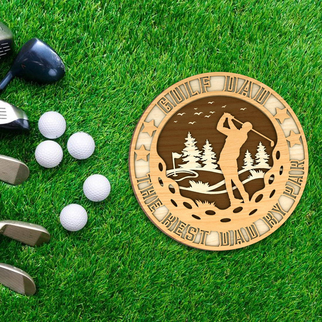 Best Dad By Par 2 Layered Custom Wood Sign, Christmas Golf Gift, Gifts For Dad And Grandpa