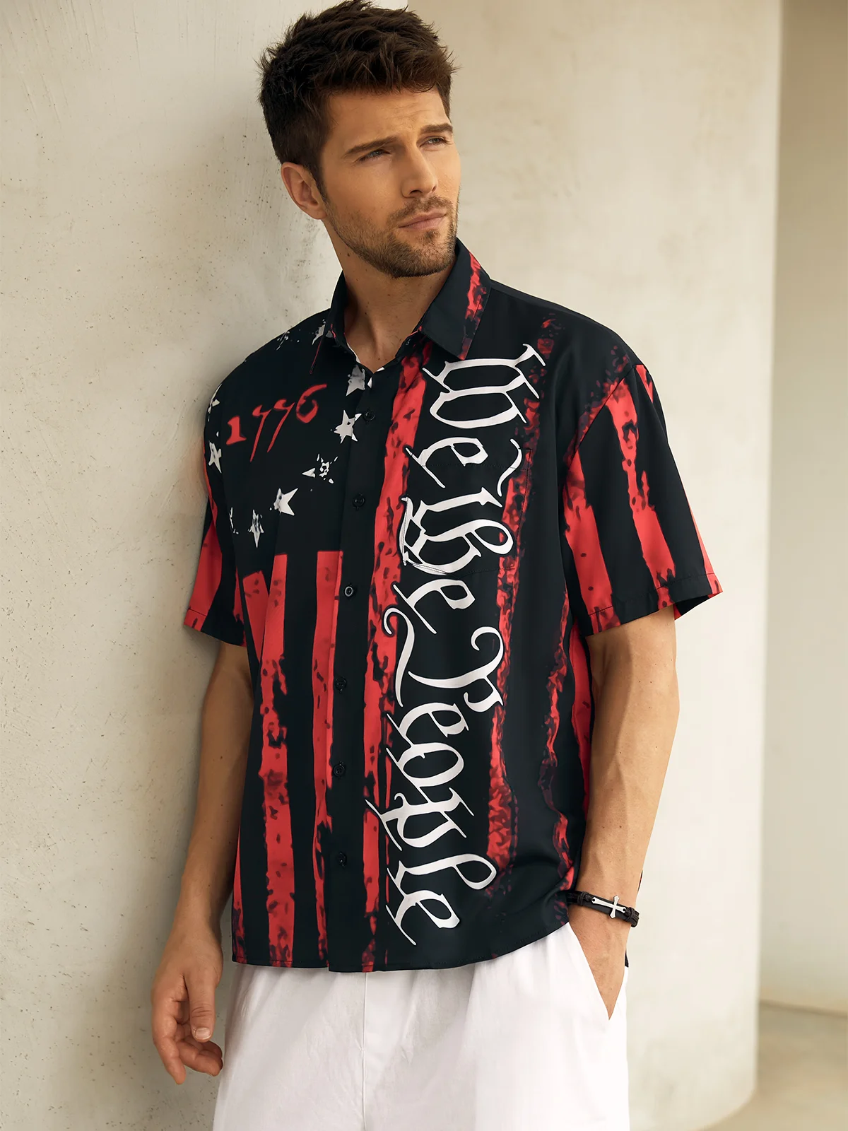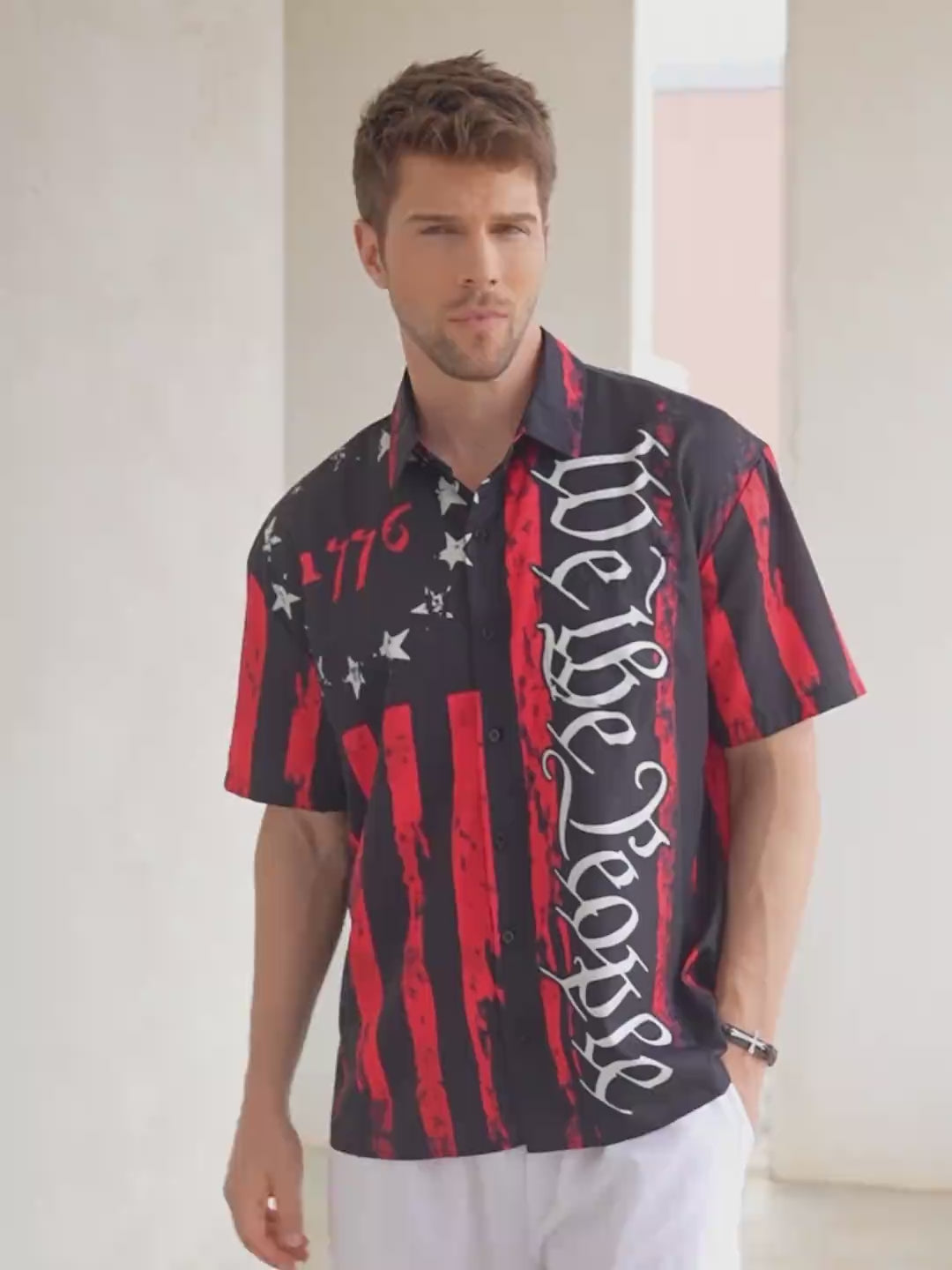 1776 We The People Red And Black Hawaiian Golf Shirt, 250th Anniversary Tropical Vibe Men's Golf Shirt