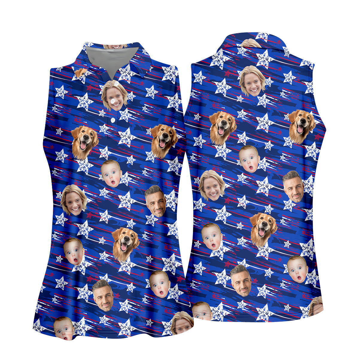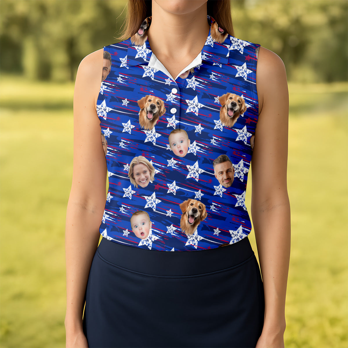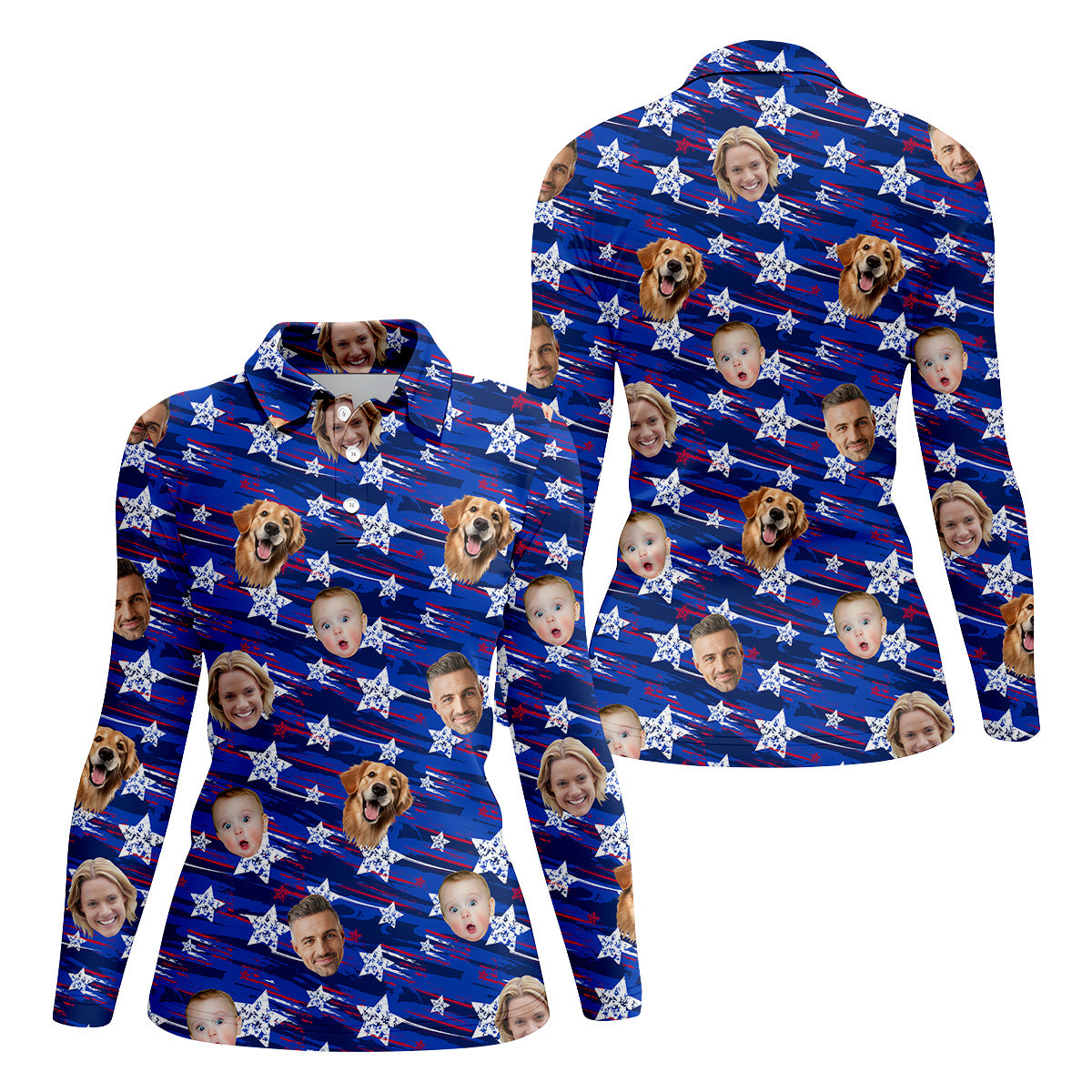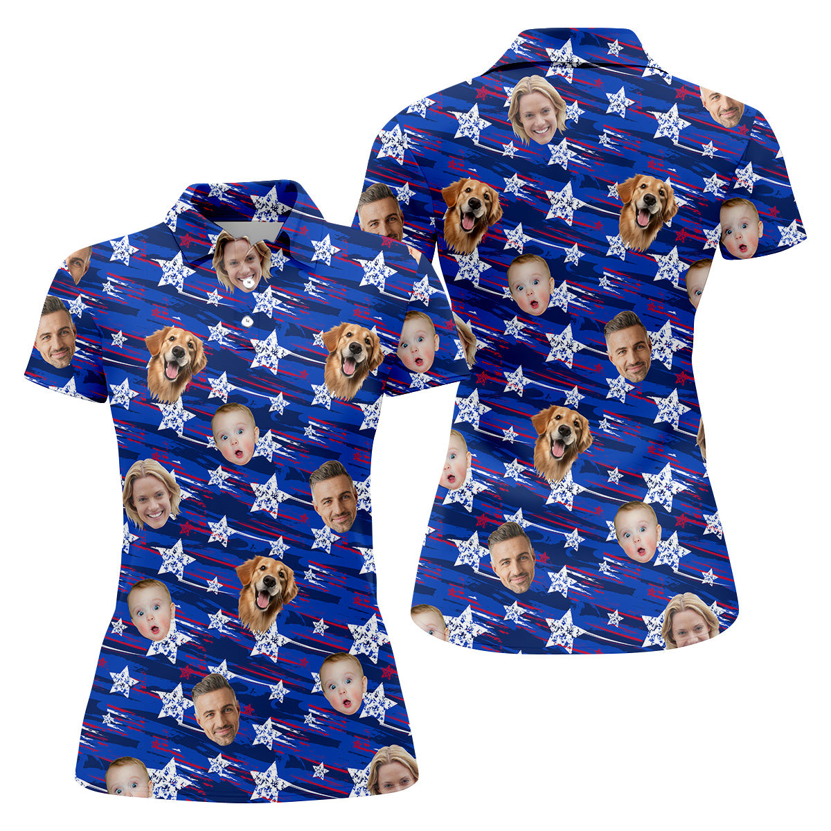 Family Portrait Golf Shirt, Patriotic Golf Shirt, Golf Shirt Gift For Women, Women's Golf Polo Shirt, USA Golf Shirt For Ladies