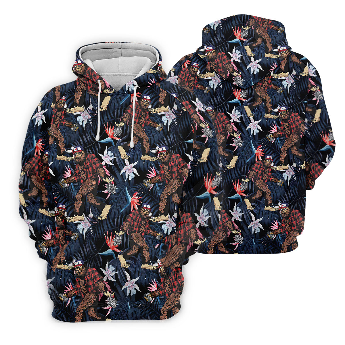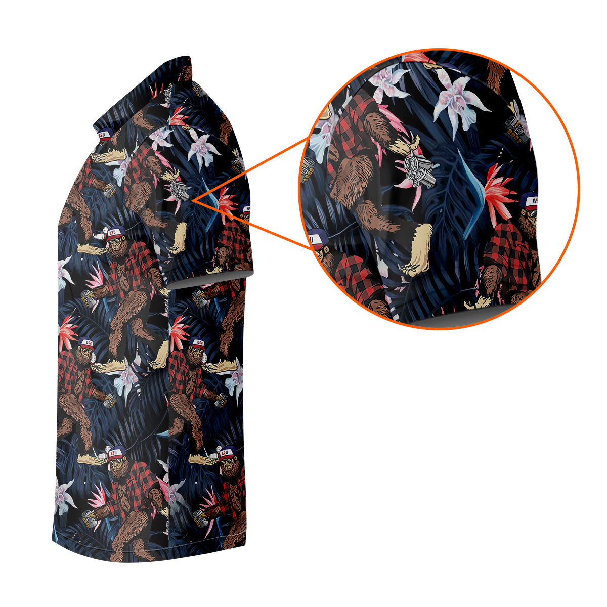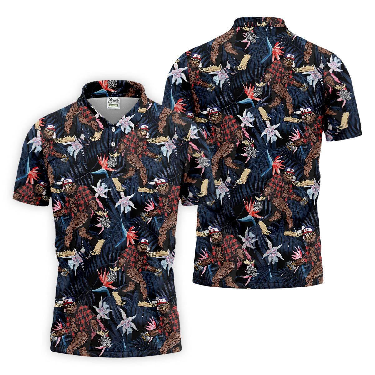 Abstract Floral Pattern Funny Bigfoot Shirt, Mens Golf Polo Shirts, Cool Golf Gifts, Golfing Apparel