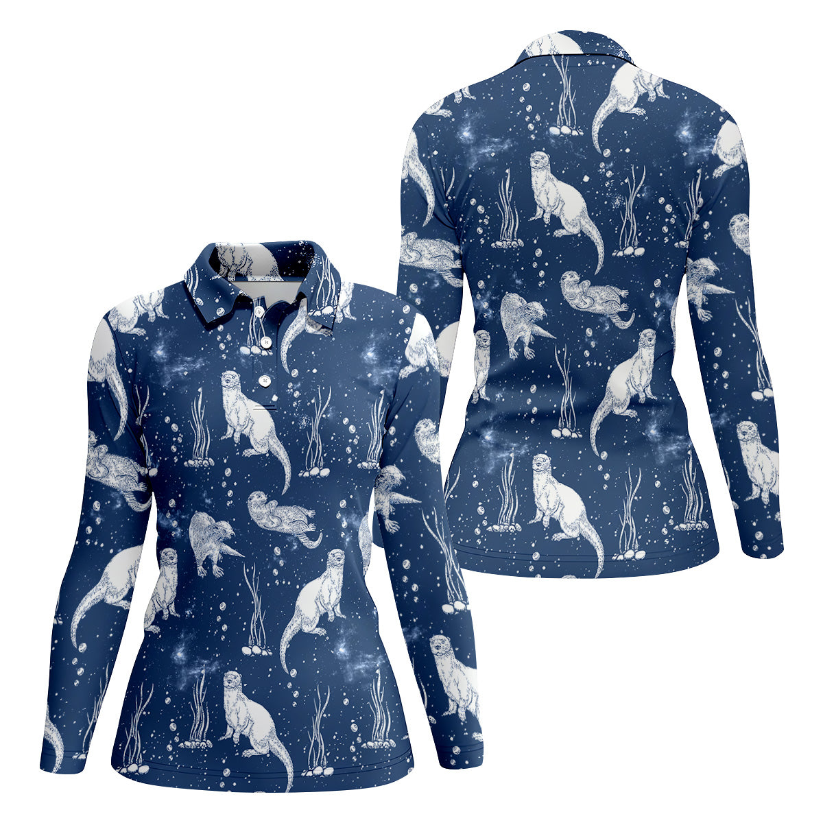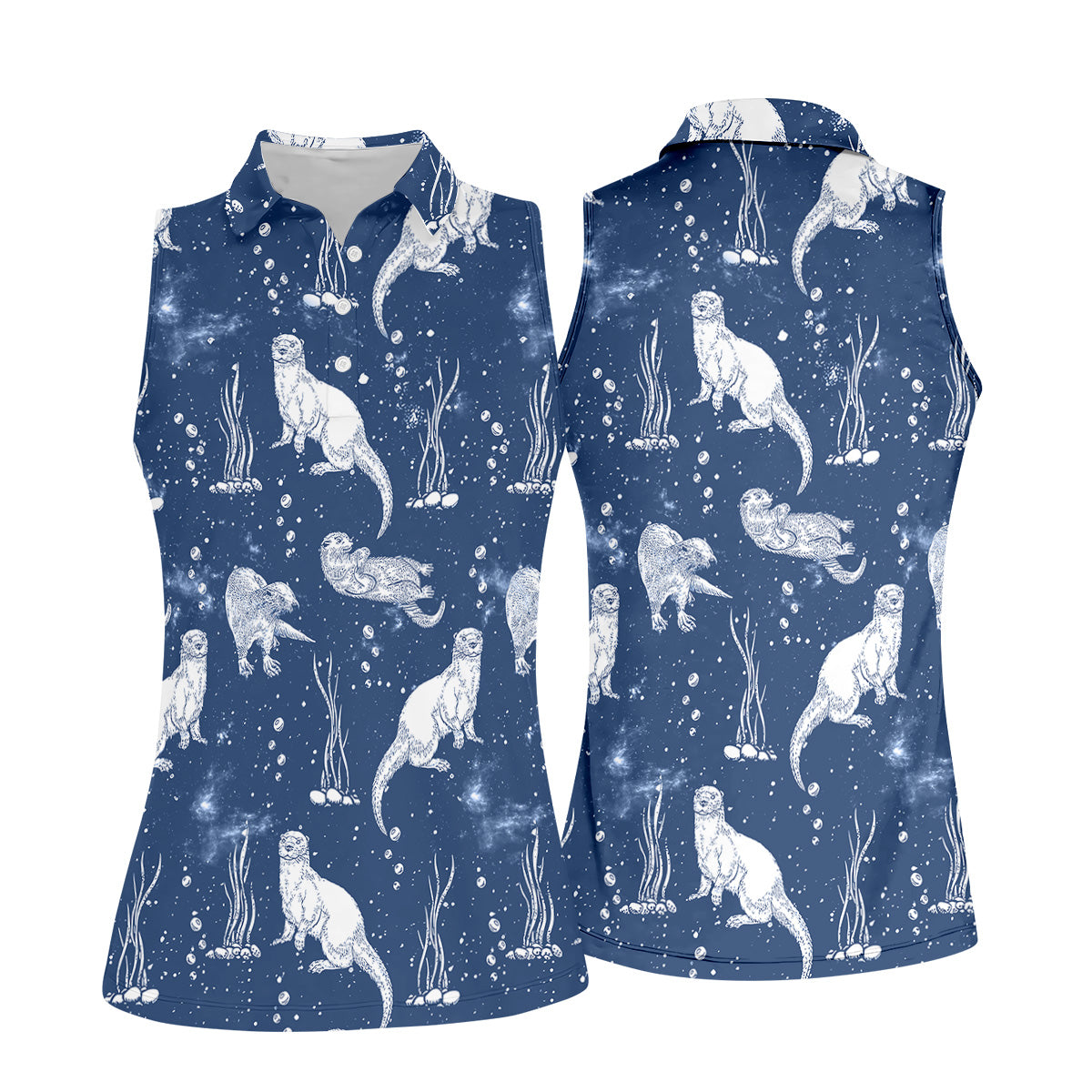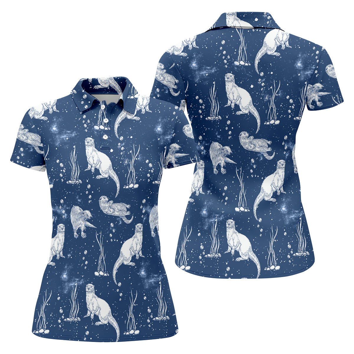 Adorable Otter Ocean Vibe Tropical Golf Shirts, Fun Women's Golf Shirts, Gift For Animal Lovers
